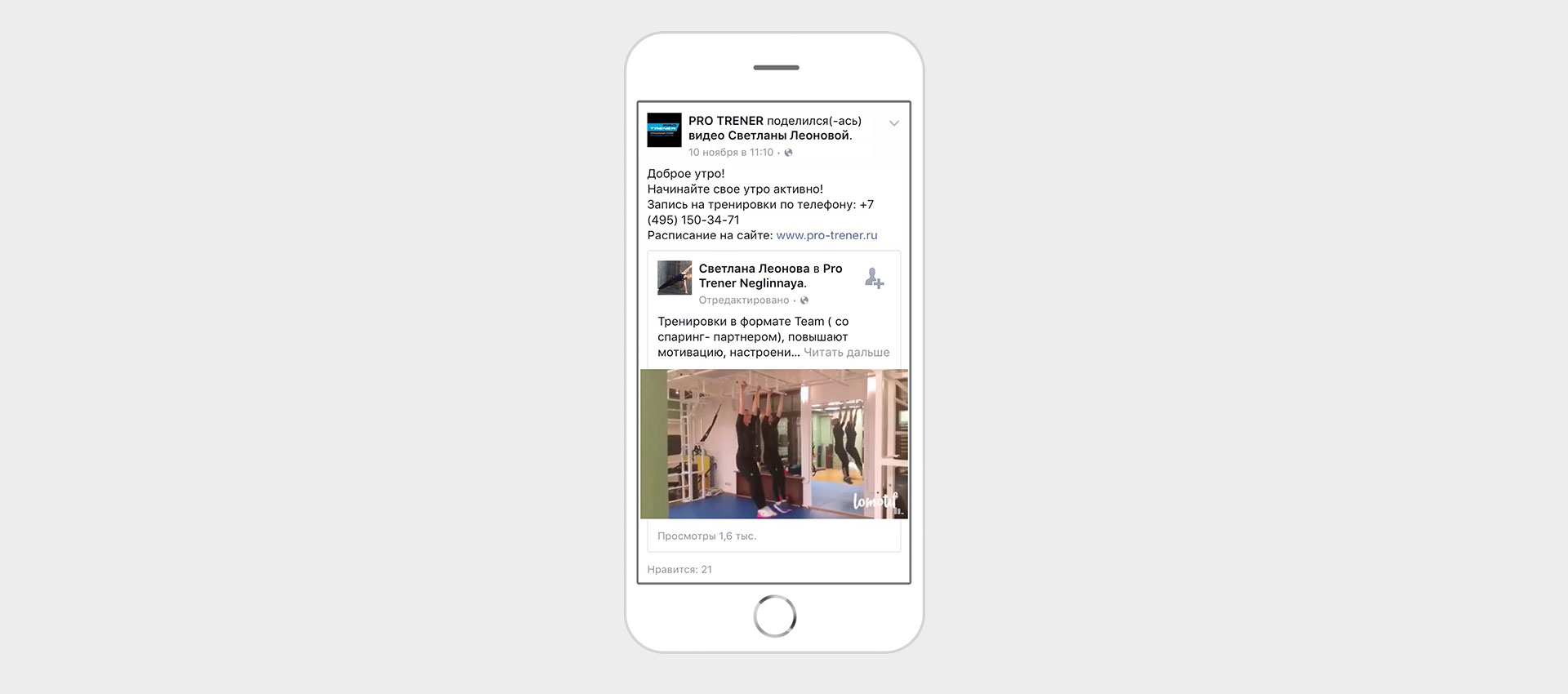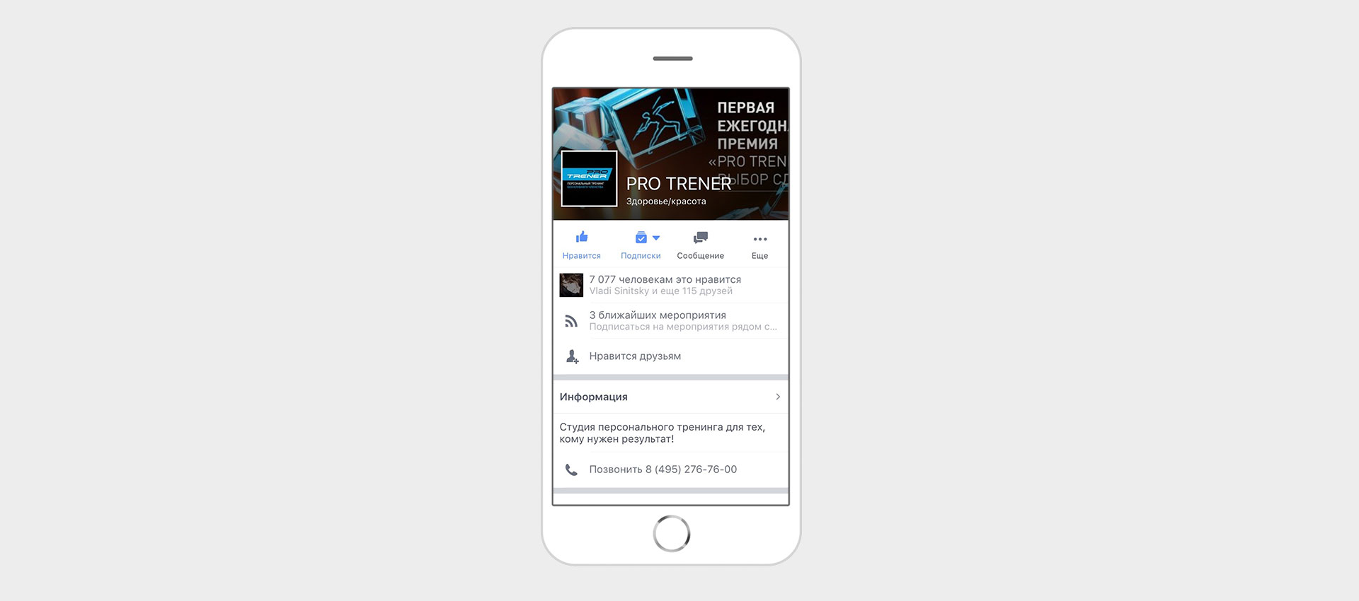 Promotion in social networks of PRO TRENER personal training studios