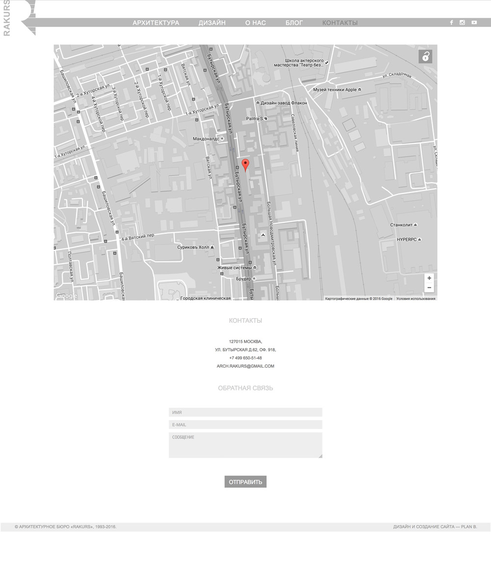 Сайт для архитектурного бюро Ракурс